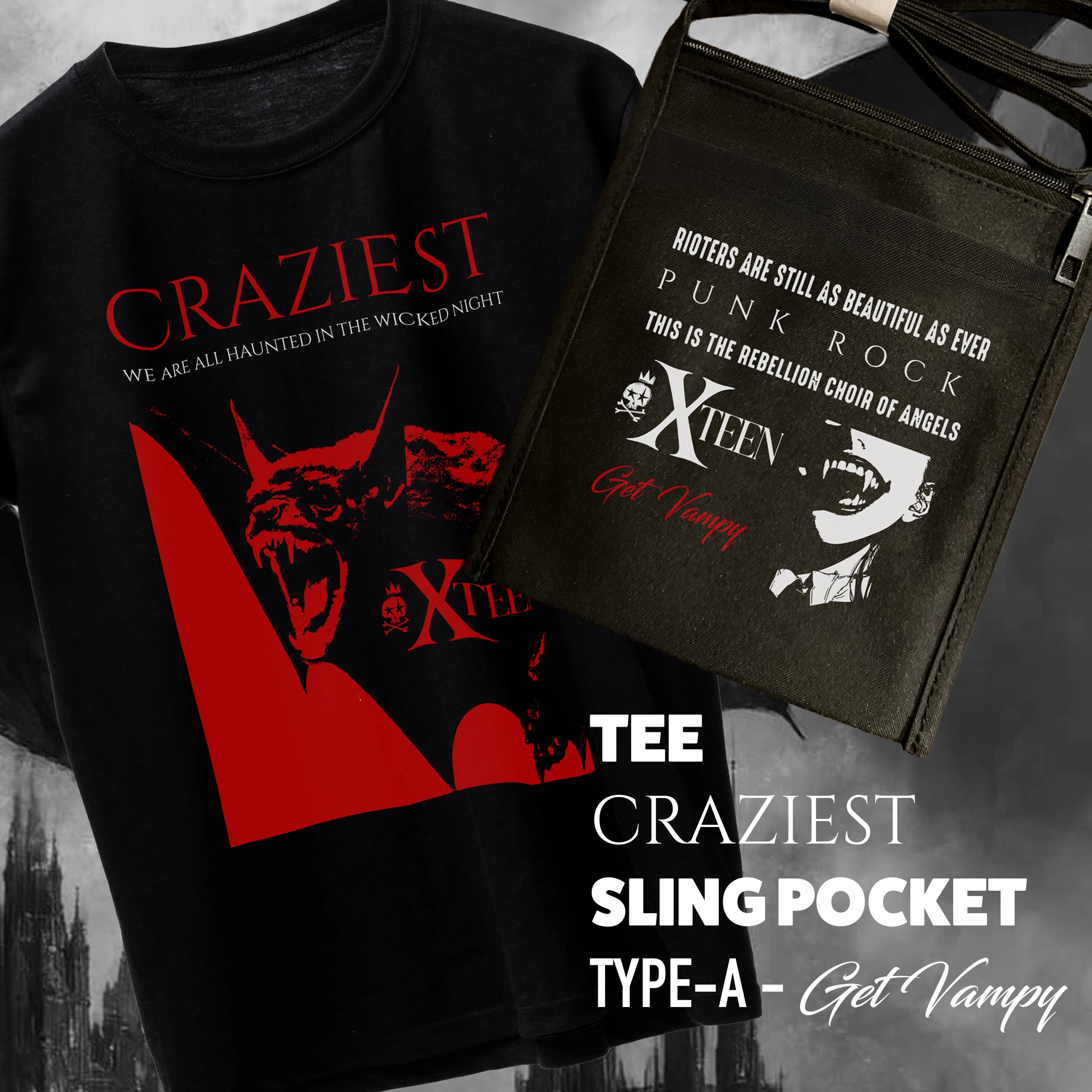TEE「CRAZIEST」+スリングポケットTYPE-A「GET VAMPY」のセット販売になります。